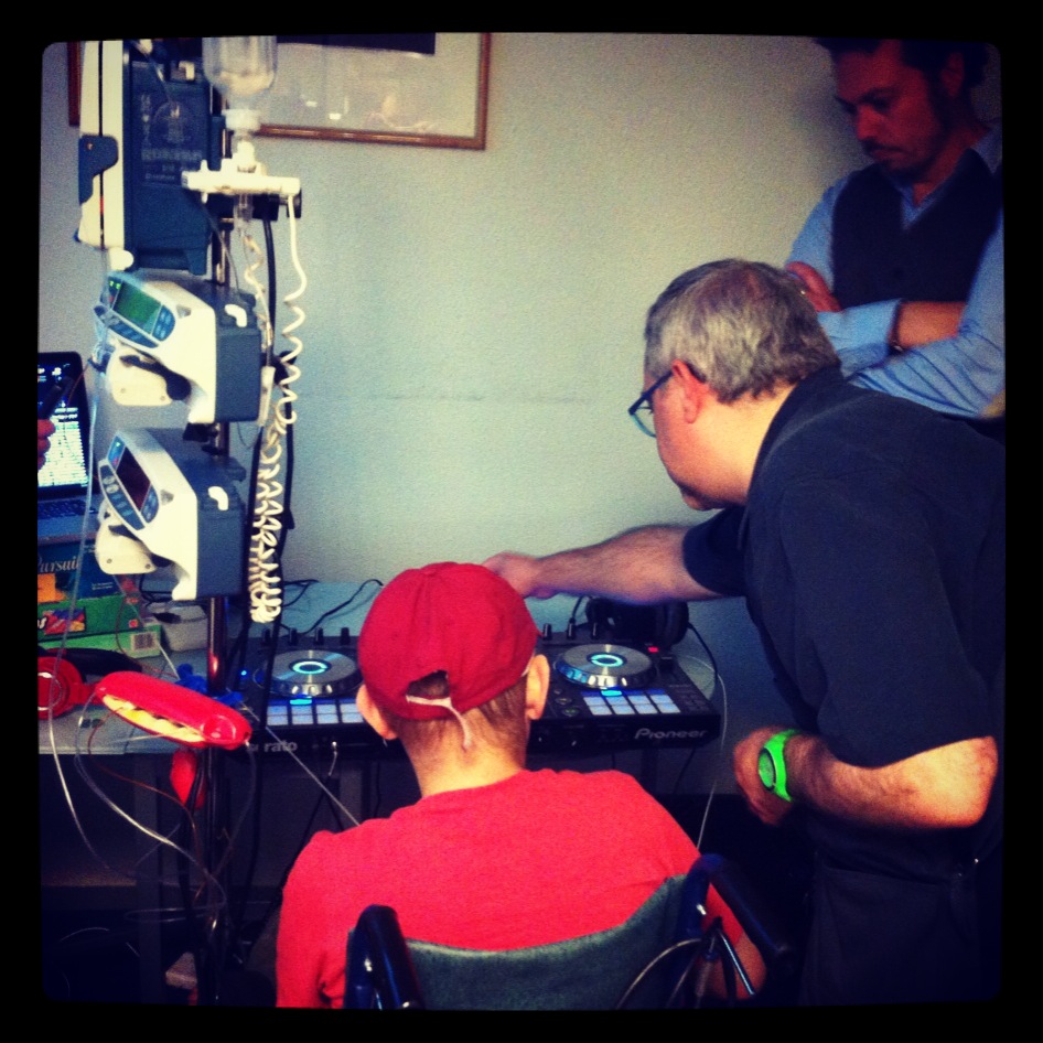 Mercredi 19 juin nous faisons entrer la culture DJ et mixe pour les enfants et adolescents à l’Institut Curie. Artur Leg et Philip Thorn rencontrés sur l’émission radio « Sensation » ont souhaité être aux côtés de l’association Juste Humain pour faire vivre un moment unique aux jeunes hospitalisés. Ils ont partagé leur savoir faire, de nouvelles techniques sur un matériel pro, et tout l’univers DJ. C’était un atelier chaleureux rythmé de bonne humeur et de beaucoup de talent.